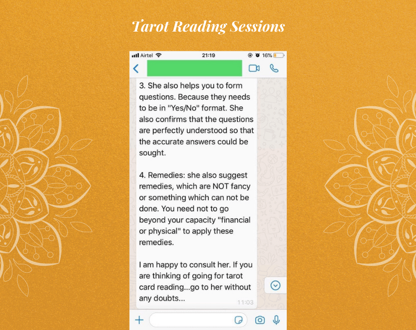 She suggests effective remedies for almost every problem at a very reasonable cost. Horizzon The Tower of Pentacles has been conducting Workshops, taking one-on-one Tarot Card Reading online sessions, performing several rituals for clients, and giving remedies over various life issues.